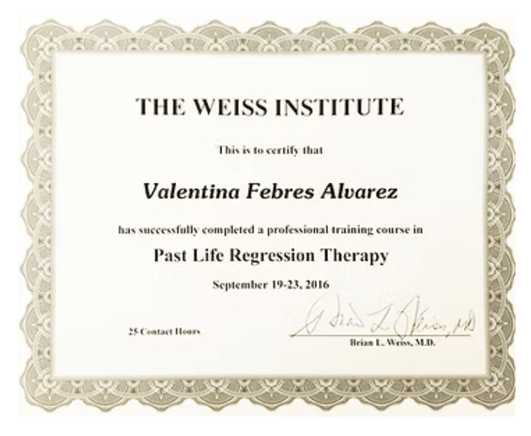 I trained with Dr. Brian Weiss, studying intuitive exercises and hypnosis techniques, with the intention of achieving a connection with my higher guidance, and my goal is to help you achieve yours!